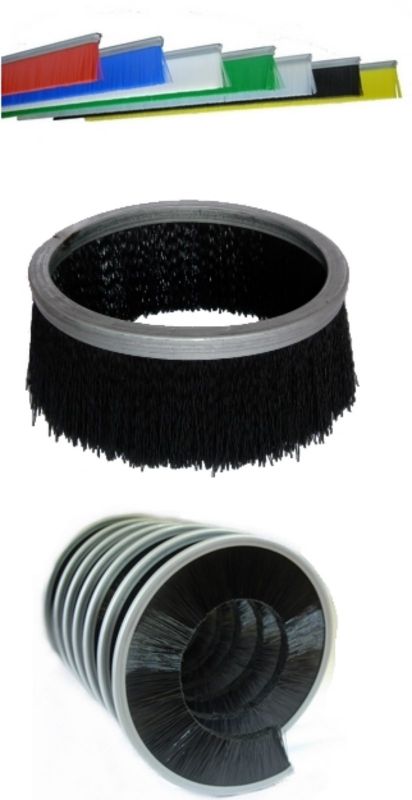 Il est aussi possible d'enrouler la brosse strip sur un arbre afin de réaliser des brosses cylindriques pour des opérations de brossage nettoyage et traitement de surface sur des largeurs de 3 à 3000 mm. Cette technique permet de réaliser des brosses avec une densité variable en fonction du pas d'...